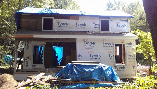Wow guess I haven't posted much of the progress i've made on the front porch so better get to it. Haven't had a whole lot of time in the past month or so to work on the house but have managed to put a good dent in the front porch, put up most of the siding and blocks for wall lights, installed trim and casing for door and got the door hung and sanded and watersealed the porch deck. Finished painting the window for the porch as well and put that back in its place. Also been working on the driveway side of the house framing a bump-out for the window in the dining room area so there will be a big window sill for plants, etc and will also build a planter box for the bump out, it will hopefully be a nice looking feature on that side of the house.